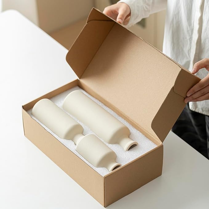 - MODERN DESIGN: Set of 3 ceramic vases in neutral tones featuring sleek bottle-shaped silhouettes perfect for contemporary home decor
