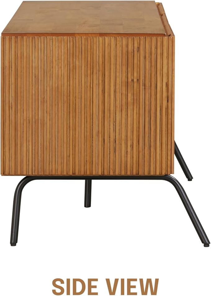NTC Veil TV Stand with 3 Doors for TVs up to 60’’, Media Console with Vertical Groove Design and Metal Legs, Modern Entertainment Center for Living Room and Bedroom, Effortless Assembly, Teak Look