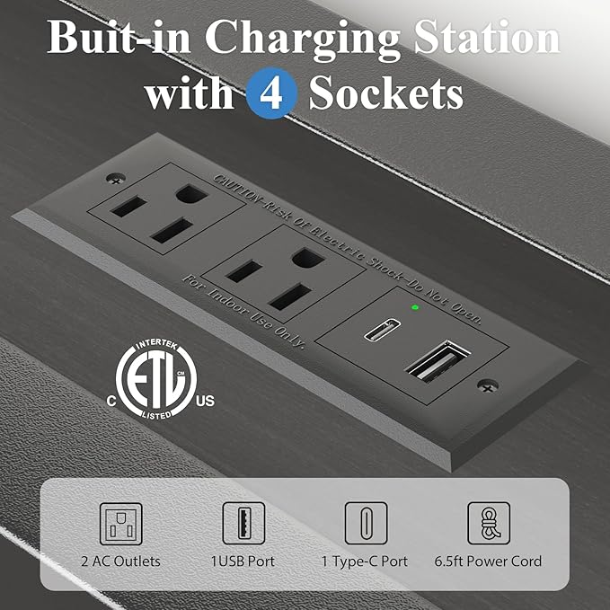 - 2-in-1 Storage & Charging Headboard: This black wooden headboard features a built-in charging station, equipped with 2 standard outlets, 1 USB port, and 1 Type-C port, making it effortless to charge your phone, tablet, smartwatch, and more while you sleep. The spacious storage design not only maximizes your bedside convenience but also offers a dedicated space for frequently used items, keeping your essentials organized and within easy reach