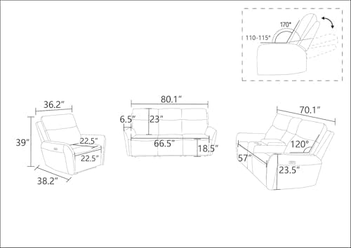 - Multifunctional Storage & Comfort – Includes hidden storage compartments in the arms, seats, and sofa for small items. The ergonomic design tilts to 115-120° when closed and Can tilt to 160 -180 ° in extended state enhancing sitting comfort