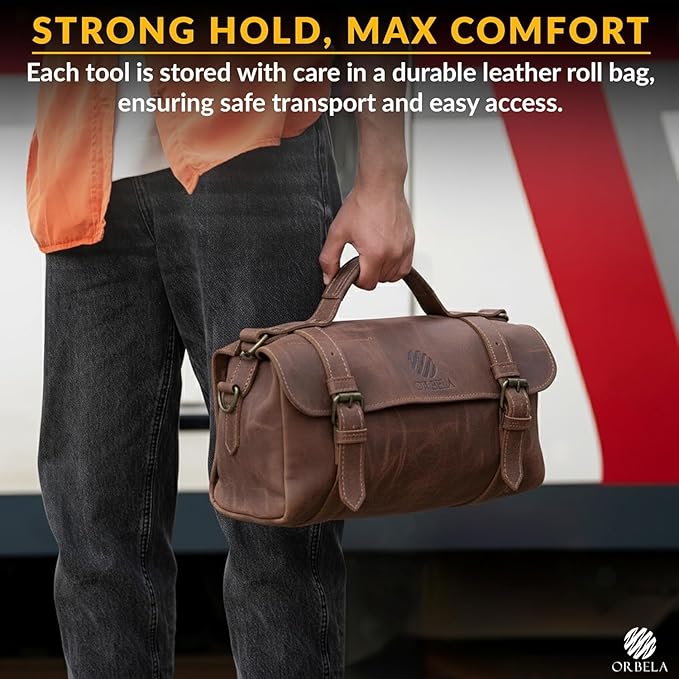 - 5. PREMIUM LEATHER ROLL BAG INCLUDED The elegant leather roll bag safely stores all your wood carving tools and wood chisel sets. Portable and durable, it keeps your carving set organized at home, in the workshop, or outdoors.