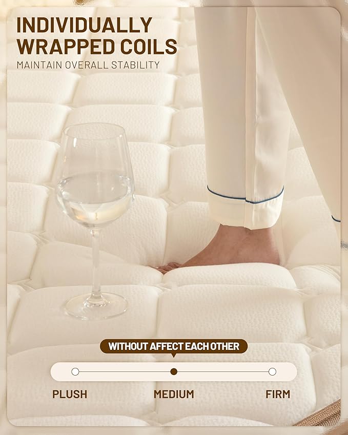 - 【Advanced Motion Isolation for Undisturbed Rest】-- Hundreds of individually wrapped coils absorb movement instantly—no more disruptions from your partner’s tossing and turning. Ideal for couples, light sleepers, apartments, and guest rooms