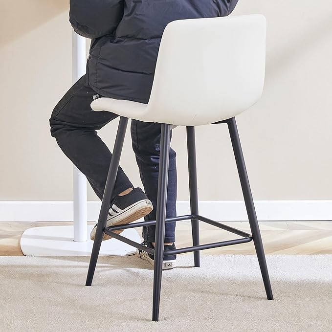 - Durable & Stable : Built with a strong black metal frame and reinforced footrest, this white barstools set of 4 supports up to 300 lbs with rock-solid stability. Finished with a waterproof, rust-resistant coating, these bar height chairs are made to last