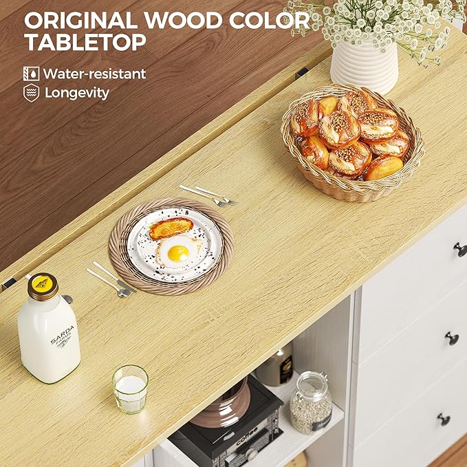 - Coutertop with Drop Leaf: Foldable tabletop supports expands workspace when needed, retracts to save space, making it a versatile addition to any kitchen. The counter top is 15.35in width, the width could be 27.17in with the drop leaf expanded. It is perfect for small kitchen area.
