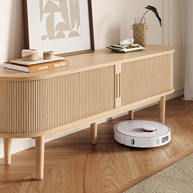 - Functional Entertainment Center – Designed with four separate storage compartments, this fluted TV stand offers versatile organization for everything from media players and board games to seasonal décor. The spacious open middle adjustable shelf is perfect for housing your media devices, gaming consoles, DVDs, While sliding doors cabinet provide easy access to keep your essentials neatly tucked away and your space clutter-free