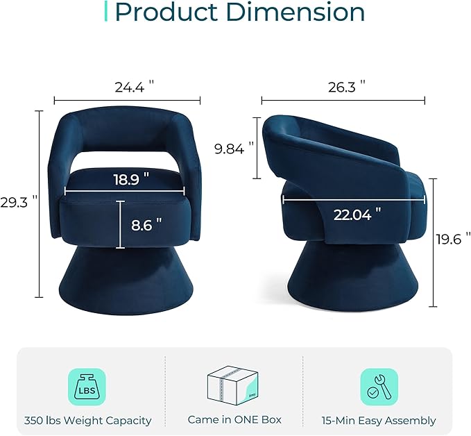 - Quick & Easy Assembly - Set up this barrel swivel accent chair in just 10 minutes. All tools included, making this practical armchair or reading chair ready to use in no time. [NOTE] Overall small chair, please double-check the size before purchasing to ensure it meets your needs