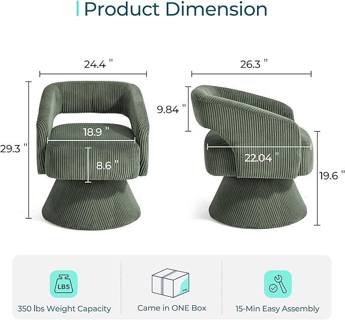- Quick & Easy Assembly - Set up this barrel swivel accent chair in just 10 minutes. All tools included, making this practical armchair or reading chair ready to use in no time. [NOTE] Overall small chair, please double-check the size before purchasing to ensure it meets your needs