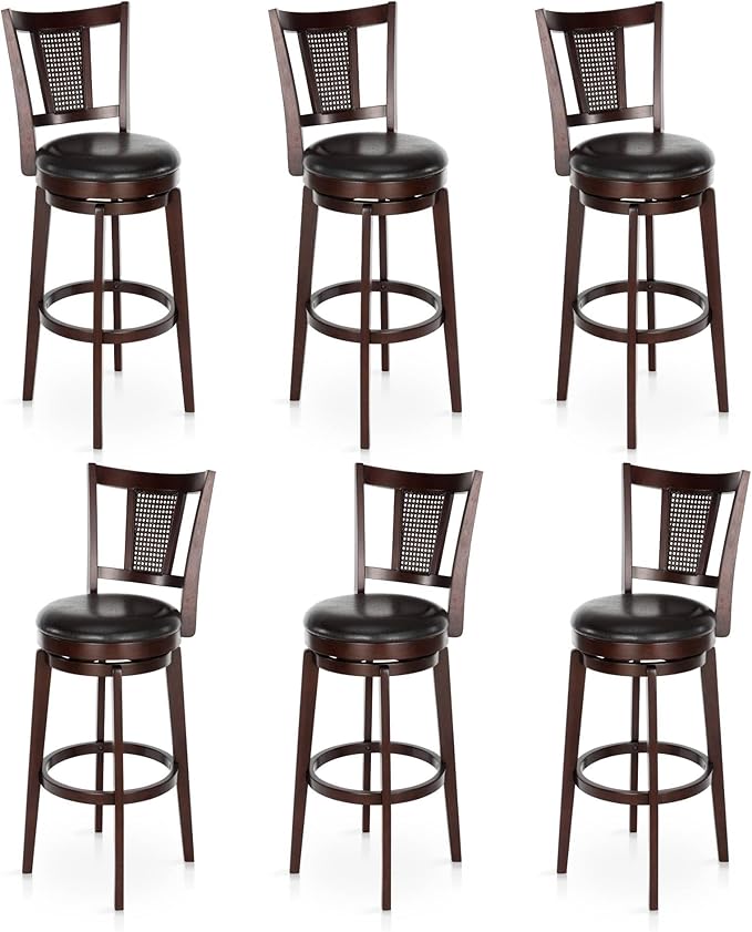ALPHA HOME Swivel Bar Stools Set of 6, Kitchen Stools with Backs, 30 Inch Wooden Bar Stools, 360 Degrees Swivel Chair with Upholstered, Wrap-Around Footrest Counter Chair, Dark Brown
