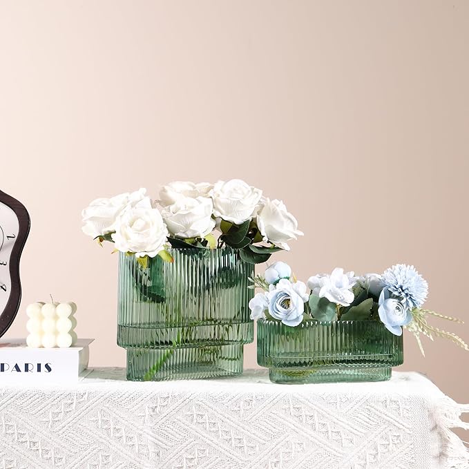 - Stylish Ribbed Vase for Home Decor: This elegant set includes two ribbed vases in different sizes, perfect for displaying bouquets of varying scales. Add a touch of sophistication to any space—ideal for dining tables, desks, mantles, and shelves.