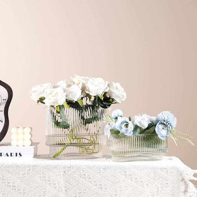 - Stylish Ribbed Vase for Home Decor: This elegant set includes two ribbed vases in different sizes, perfect for displaying bouquets of varying scales. Add a touch of sophistication to any space—ideal for dining tables, desks, mantles, and shelves.