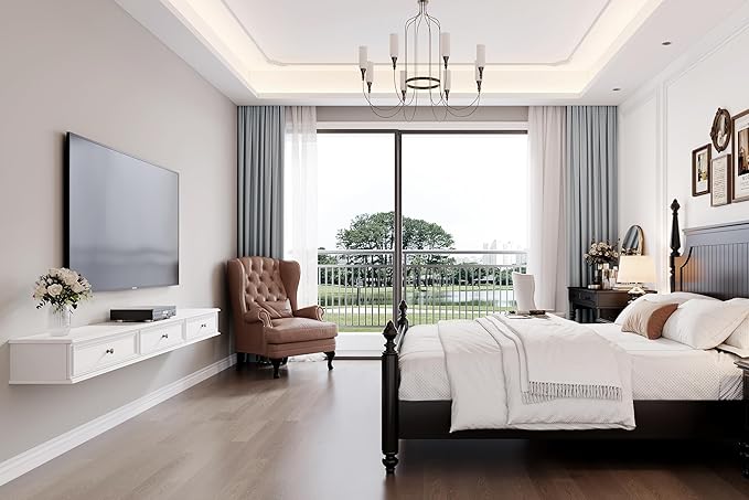 - Multi-Functional Storage: Despite its compact floating design, this TV stand provides generous storage with 2 drawers and 1 compartment. Perfect for organizing remotes, gaming consoles, DVDs, and cable strips, it keeps your entertainment area clutter-free. The smart structure balances style and practicality, making it a versatile storage solution for modern homes.