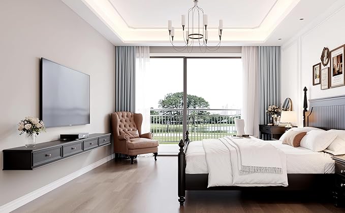 - Multi-Functional Storage: Despite its compact floating design, this TV stand provides generous storage with 2 drawers and 1 compartment. Perfect for organizing remotes, gaming consoles, DVDs, and cable strips, it keeps your entertainment area clutter-free. The smart structure balances style and practicality, making it a versatile storage solution for modern homes.