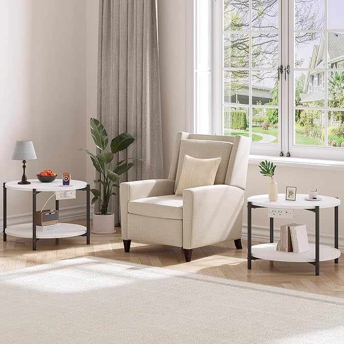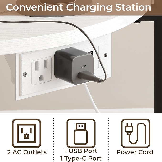 - 【Side Table with Charging Station】These round side table set of 2 features 2 AC outlets, 1 USB port, and 1 Type-C port on the sides, allowing you to charge your phone, tablet, desk lamp, and other electronic devices directly on the tabletop without worrying about spilling coffee