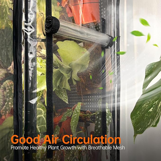- Durable EVA Cover & Optimal Growing Conditions - The high-efficiency EVA cover maintains ideal temperature and humidity for indoor plants, even in chilly winters. Its transparent material lets you monitor growth effortlessly, while reinforced dual zippers offer easy access for watering. Two adjustable vents ensure proper airflow for plant health
