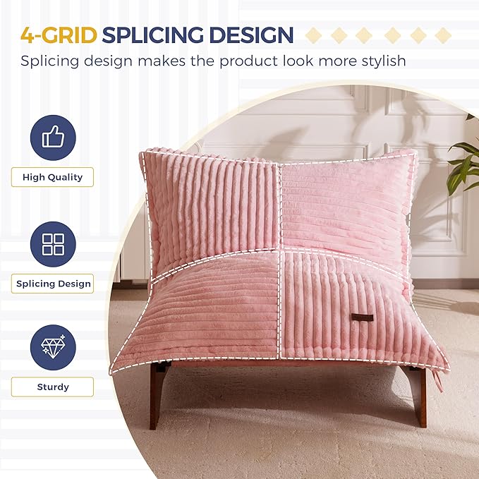 MAXYOYO Adjustable Living Room Chair, 3-Position Bean Bag Chair with Removable Cover, Upholstered Accent Chair with Frame, Soft Reclining Lounge for Bedroom, Apartment, Office, Pink