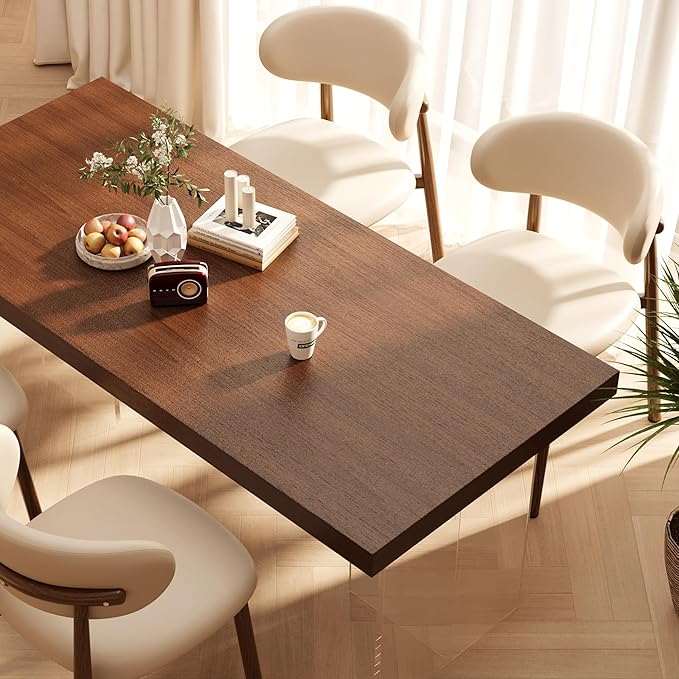Kitchen Dining Chairs Set of 4 Modern Upholstered Leather Dining Room Chair with Metal Legs, Walnut/Khaki