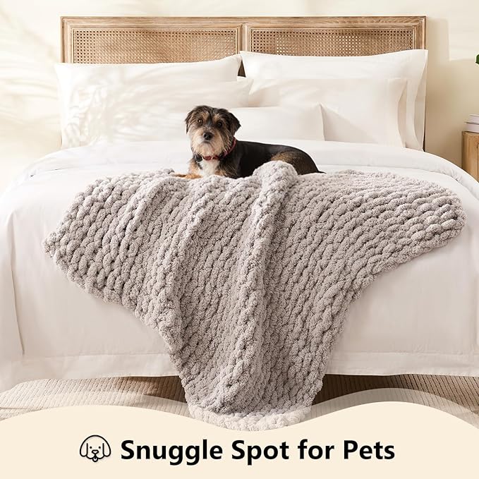 L'AGRATY Chunky Knit Blanket Throw: 40''x50'' Chenille Chunky Knitted Throw Blankets for Twin Bed Couch - Handmade Thick Cable Knit Blanket - Large Crochet Rope Blankets for Home Decor(Grey)