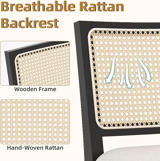 - 【Breathable Rattan Back】Our kitchen island stools feature a hand-woven rattan back that promotes excellent airflow. This makes them exceptionally comfortable, particularly in warmer climates. The inherent flexibility of rattan adds a gentle give, provides ample support and is great for long conversations.