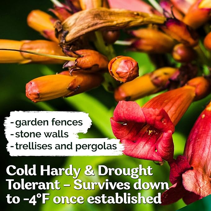 - Hardy Perennial Blooms: Campsis radicans climbing vines thrive as a perennial, hardy to -4°F. Fast growing flowering vines add color to fences, walls, and trellises, perfect for summer flower seeds lovers.