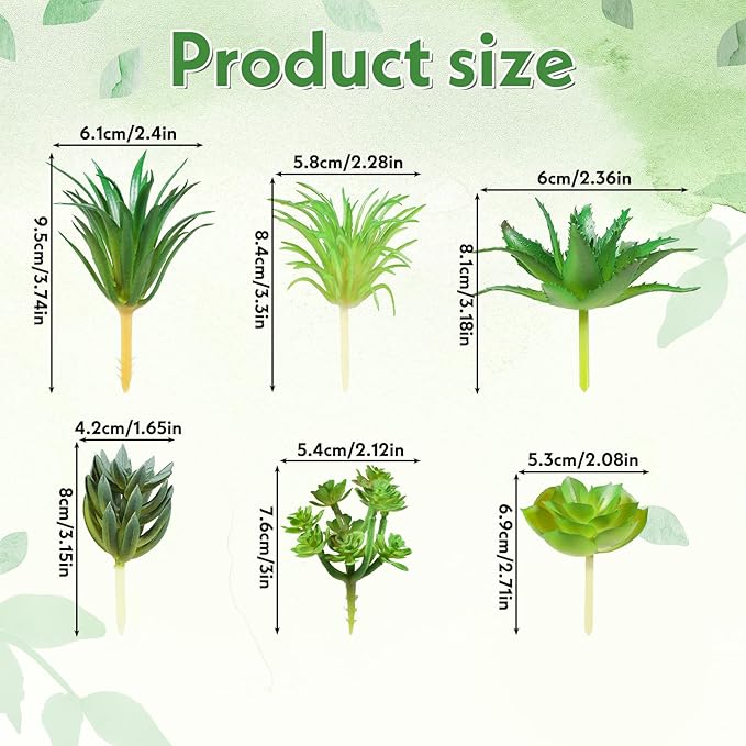 - 【Compact Dimensions】Measuring approximately 1.4-2.8 inches in width and 2.4-5.1 inches in length, these mini green succulent plants are specifically designed for detailed decorative work. Their small scale allows for intricate arrangements in limited spaces while maintaining visual impact, perfect for desktop displays or incorporated into larger artistic compositions.