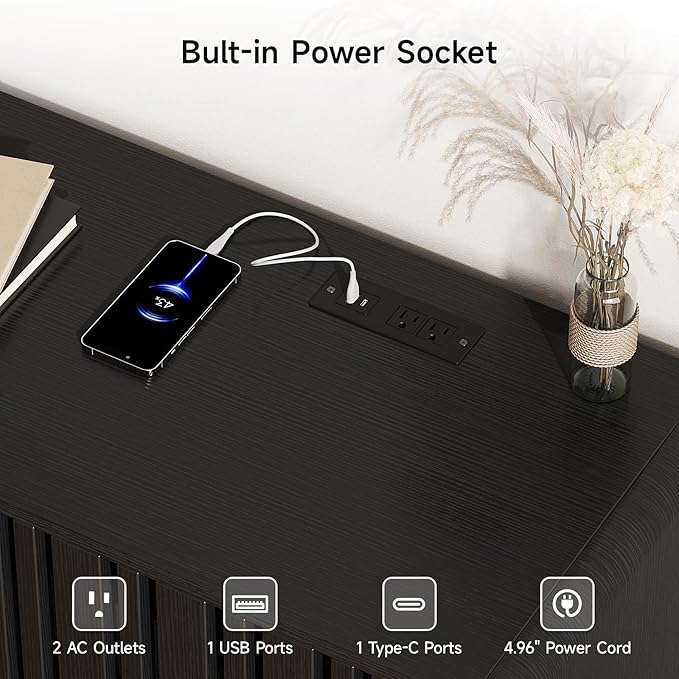 - Practical and Stylish:This entertainment center features a smooth plank surface finish and safety rounded corners designed to prevent everyday bumps. It includes a built-in power socket with 2 AC outlets, 1 USB port, and 1 Type-C port, offering convenient charging for all your devices