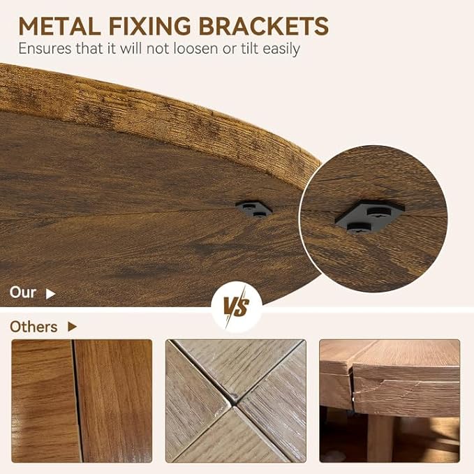 - Sturdy Construction: Unlike many other products, we have effectively tackled common concerns such as uneven, unstable tabletops and significant gaps between wooden boards. Our four boards are securely connected using reinforced flat metal brackets, which effectively prevent the tabletop from loosening, allowing you to enjoy your meals in comfort.