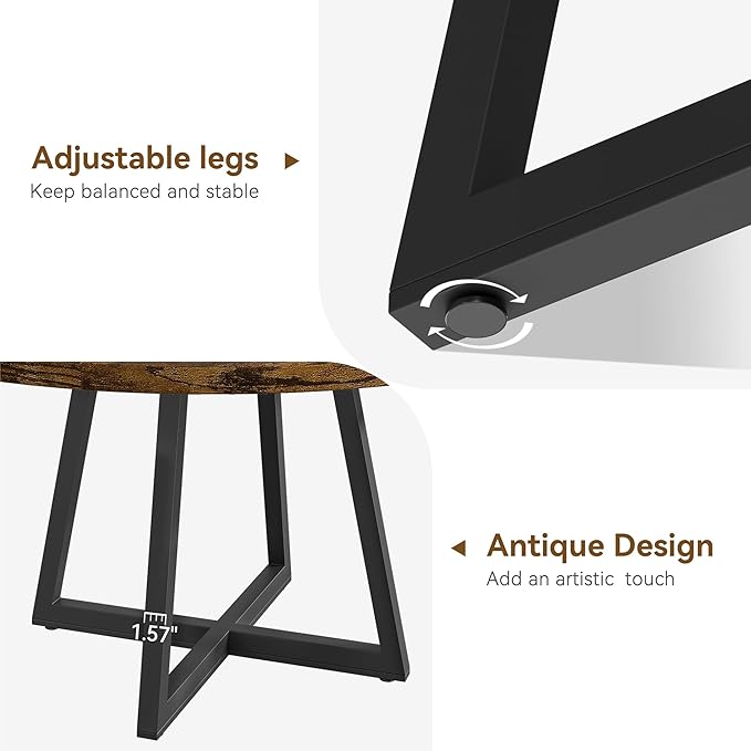 - Adjustable Leg Pads: Equipped with adjustable leg pads, this kitchen and dining table allows easy height adjustments of up to 0.39 inches with a simple rotation. The pads feature an innovative anti-slip design, enabling them to adapt to various surface heights and ensuring the table remains stable without any wobbling on uneven ground.