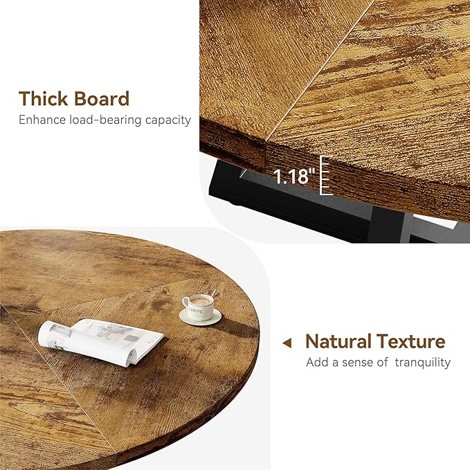 - Strong Load-Bearing Capacity: This 47-inch round kitchen table features a robust 1.18-inch thick MDF wood top, supported by metal legs with a thickness of 1.57 inches, providing an impressive load-bearing capacity of up to 300 pounds. You can confidently place tableware, drinks, and decorations on the table—even near the edges—without worrying about tipping from uneven weight distribution.