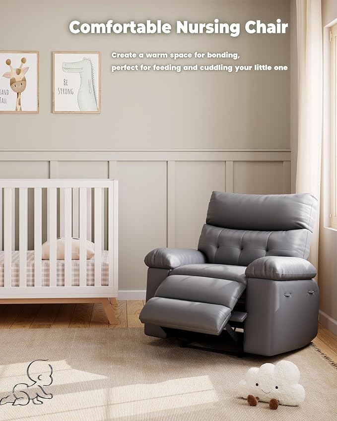 - Durable PU Leather & Sponge Filling: Crafted from high-quality PU leather, this recliner combines a sleek look with easy maintenance, making it both stylish and practical for any living space. Filled with 1.5X sponge padding, this bedroom chair ensures superior cushioning and support, enhancing your home experience