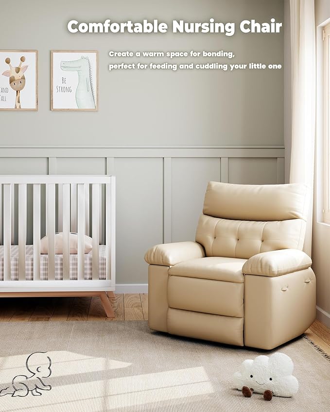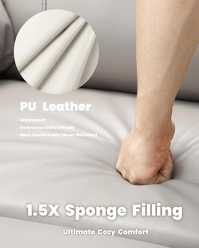 - Durable PU Leather & Sponge Filling: Crafted from high-quality PU leather, this recliner combines a sleek look with easy maintenance, making it both stylish and practical for any living space. Filled with 1.5X sponge padding, this bedroom chair ensures superior cushioning and support, enhancing your home experience