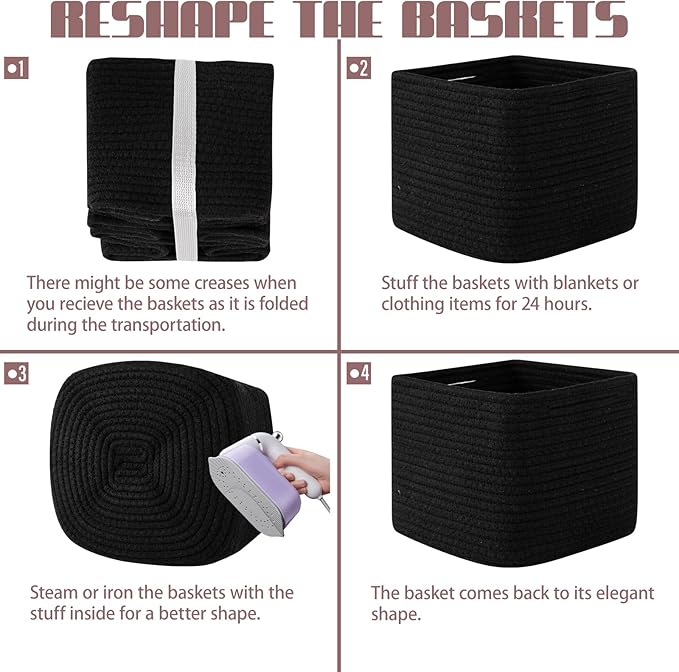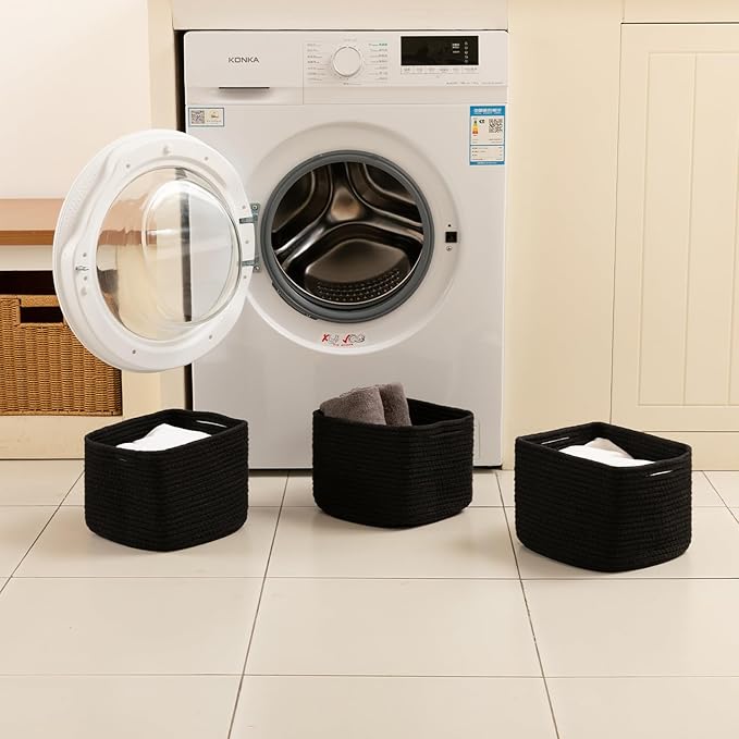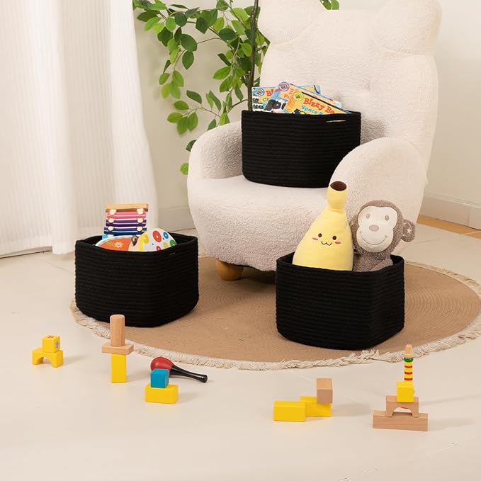 OIAHOMY 9”x9”x7” Storage Cubes, Cotton Rope Woven Baskets for Organizing, Cube Storage Bin, Small Gift Basket for Shelf, 3-Pack, Black