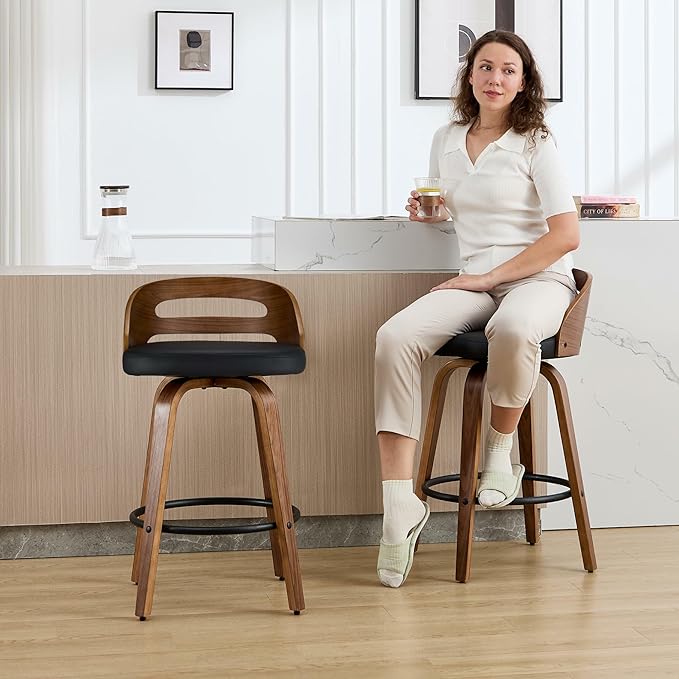 - Walnut Bar Stools: Crafted from bentwood with a rich walnut finish and black PU leather, this stool exudes a timeless, bold aesthetic that complements any bar, garage, or kitchen setting.