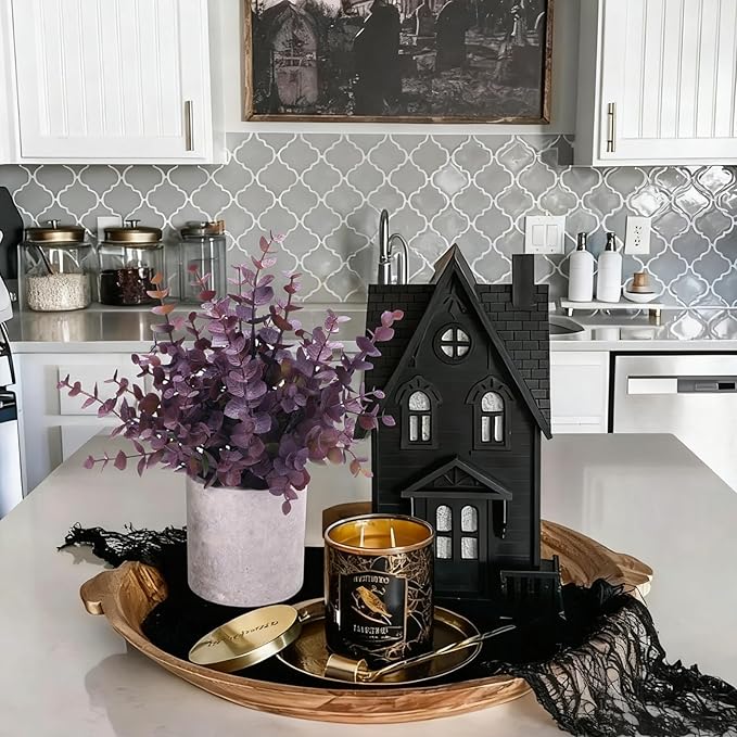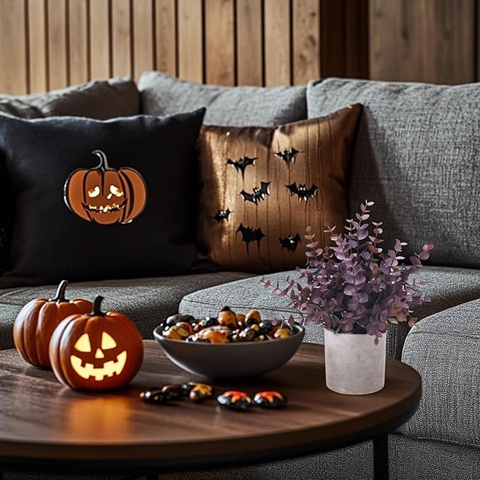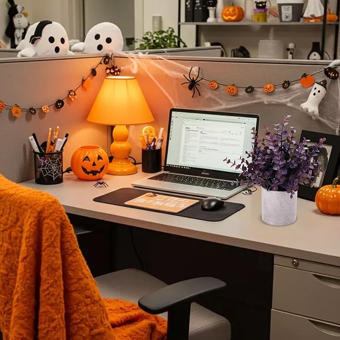 - 【Small Fake Plants】 The eucalyptus leaves of plum fake plants are made of environmentally friendly plastic, it can be well integrated with other Halloween elements to create a scary atmosphere, can be very good decoration for halloween and fall decor to add a strong holiday atmosphere to your home.After receiving the eucalyptus plant, it is necessary to adjust the branches and trunks of the simulation plants to a perfect angle to achieve a perfect appearance.