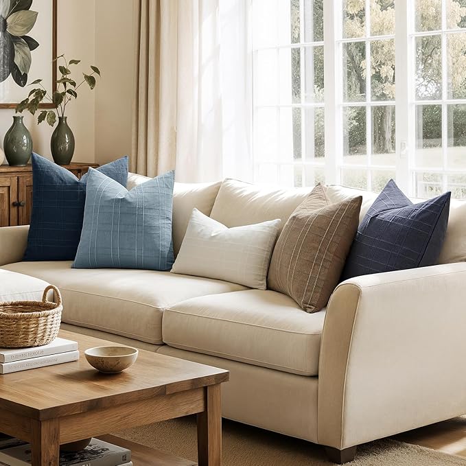 - 【Color & Style Harmony】The blue tones evoke calm and balance. The navy blue adds a refined, modern touch, while the soft light blue brings an airy, coastal feel. Both blend beautifully with neutral or white decor.