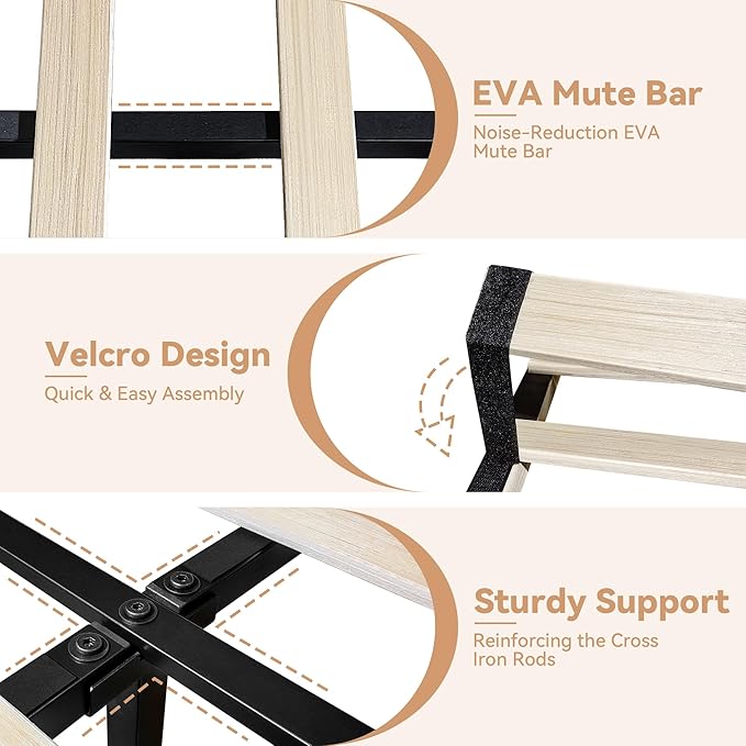 - Easy Assembly King Size Bedframe: The modern bed frame is designed for easy assembly with a convenient Velcro system, and includes noise-reducing cotton strips to ensure a peaceful night's sleep. Clear instructions make for quick setup. Note: Mattress is Not Included