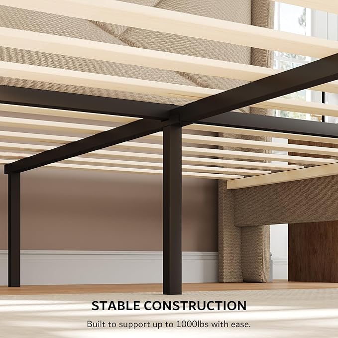 - Rock-Solid Stability: Crafted with a heavy-duty metal frame and 12 solid wood slats, it supports up to 1000 lbs with 8 reinforced points for ultra-sturdy sleep
