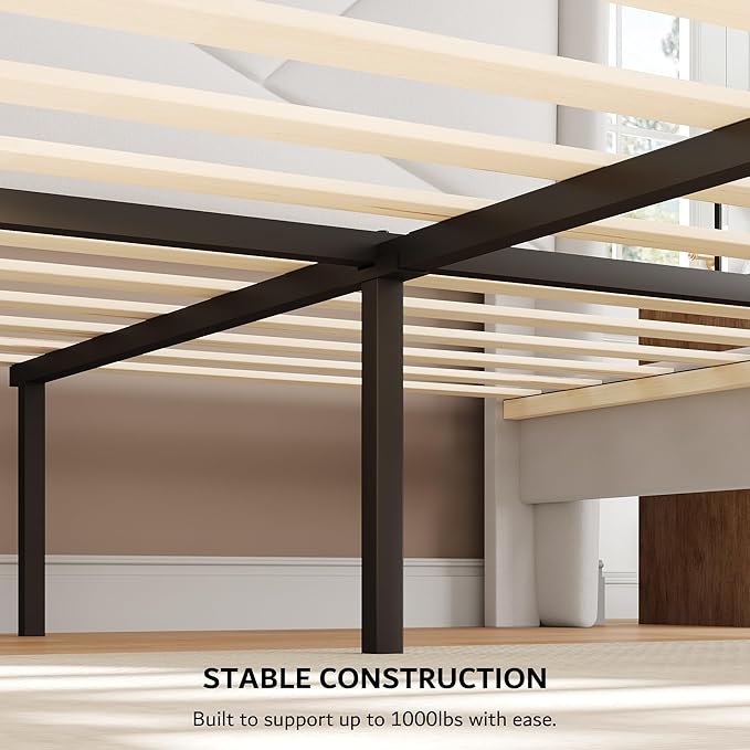 - Rock-Solid Stability: Crafted with a heavy-duty metal frame and 12 solid wood slats, it supports up to 1000 lbs with 8 reinforced points for ultra-sturdy sleep