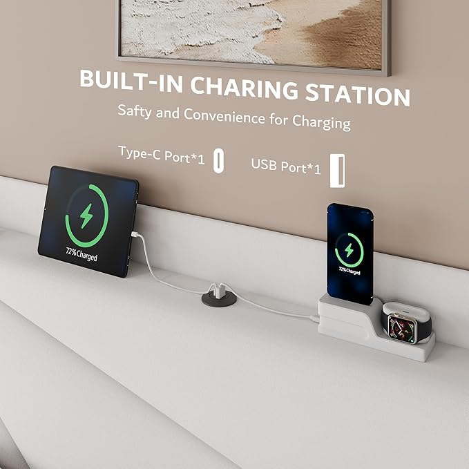 - Special Feature : Noise-Free, Storage Wingback Headboard, Type-C & USB Charging Ports, Upgraded Heavy-Duty Structure Noise-Free, Storage Wingback Headboard, Type-C & USB Charging Ports, Upgraded Heavy-Duty Structure