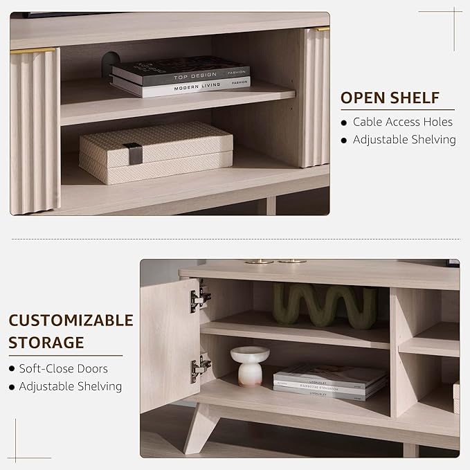 - 𝗘𝗹𝗲𝗴𝗮𝗻𝘁 𝗗𝗲𝘀𝗶𝗴𝗻: This TV stand boasts exquisite fluted details and a curved profile, echoing the timeless elegance of mid-century modern style. Its modern twist makes it a stylish and versatile addition to any interior.