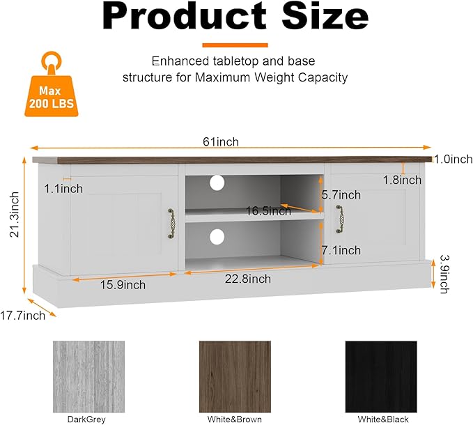 Farmhouse TV Stand for 65 Inch TVs Entertainment Center with Storage Cabinets Modern Media Console Table Rustic Wood Design for Living Room Office 61 * 17.7 * 21.7 Inch White&Brown