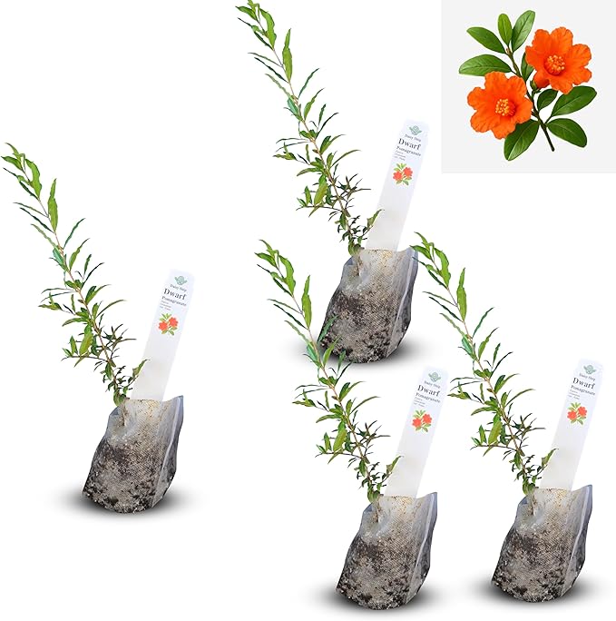Live Dwarf Pomegranate Plant (Punica Granatum) - Compact, Ornamental Fruit Bearing Shrub, Indoor/Outdoor (4 pom-Dwarf sacs)