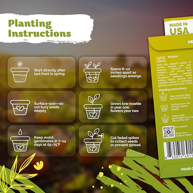 - High Germination Rate: Each mullein seed for planting germinates in 7–14 days. Ideal herb seeds for USDA zones 3–9, reaching up to 48-72 inches (4-6 ft) cm in full sun.