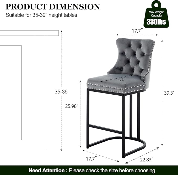 - Quick-Assembly & Skin-Friendly: Crafted with velvet upholstery, soft and comfortable. Includes simple tools and clear instructions for 15-minute assembly. Lightweight and durable, these stools seamlessly transition between kitchens, bars, patios, or small spaces, making it a practical choice for long-term use.