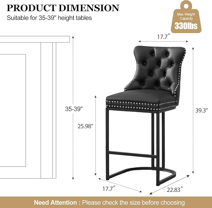 - Easy-Clean & Quick-Assembly: Crafted with waterproof, stain-resistant PU leather upholstery, spills wipe away effortlessly with a damp cloth. Includes simple tools and clear instructions for 15-minute assembly. Lightweight and durable, these Black stools seamlessly transition between kitchens, bars, patios, or small spaces, making it a practical choice for long-term use.