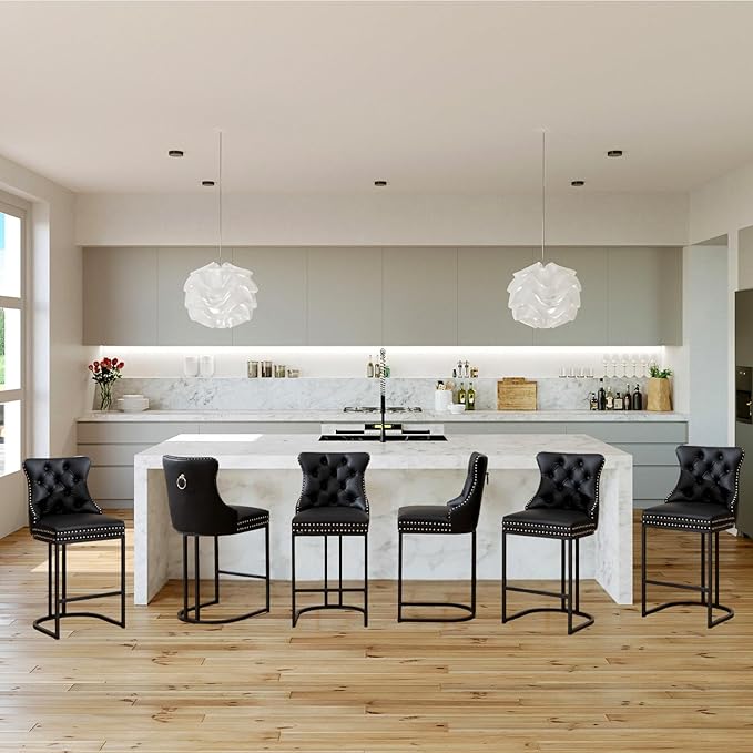 - Modern Bar Stools Set of 1:Elevate your space with these 26-inch counter height stools, blending mid-century aesthetics and contemporary comfort.The diamond-stitched backrest and decorative rivet accents add timeless elegance to any decors. Perfect for kitchens islands, bars, cafes, restaurants, pubs, lounges, dining rooms, living rooms. The height of our barstools works perfectly with standard counters and bars.