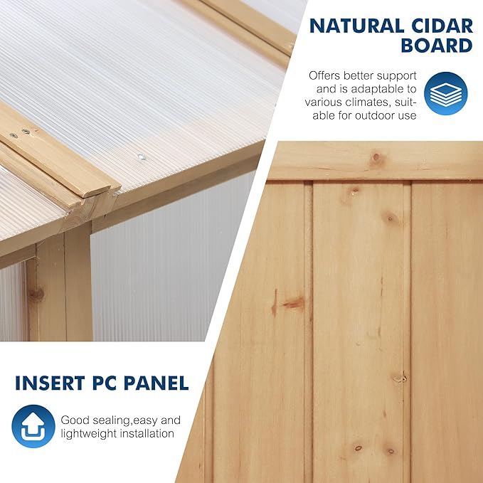 - 【Reinforced Cedar Frame】Outdoor greenhouse triangular support design at both the top and sides disperses pressure in all directions, providing greater load-bearing capacity when encountering heavy snow accumulation while also offering enhanced stability during high winds.