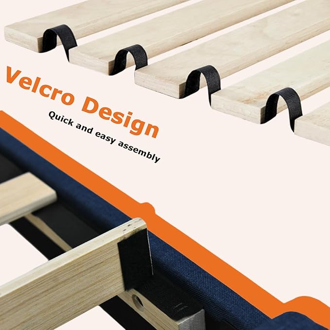 - Quiet sleep experience: Our bedframe full size is equipped with Velcro and EVA sound-absorbing strips, which are easy to install, avoiding the friction between the wooden strips and the metal frame and effectively eliminating noise. There is no squeaking sound, the mattress won't slip off, and you can enjoy a peaceful and comfortable sleep experience with our full bed frame