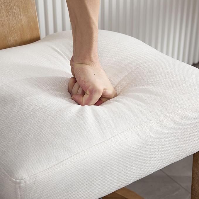 Linen Bar Stools Set of 4, Upholstered 27.7'' Counter Height Barstools with Curved Back, Farmhouse Wood Bar Chairs for Breakfast, Kitchen Island, Cafe, Cream