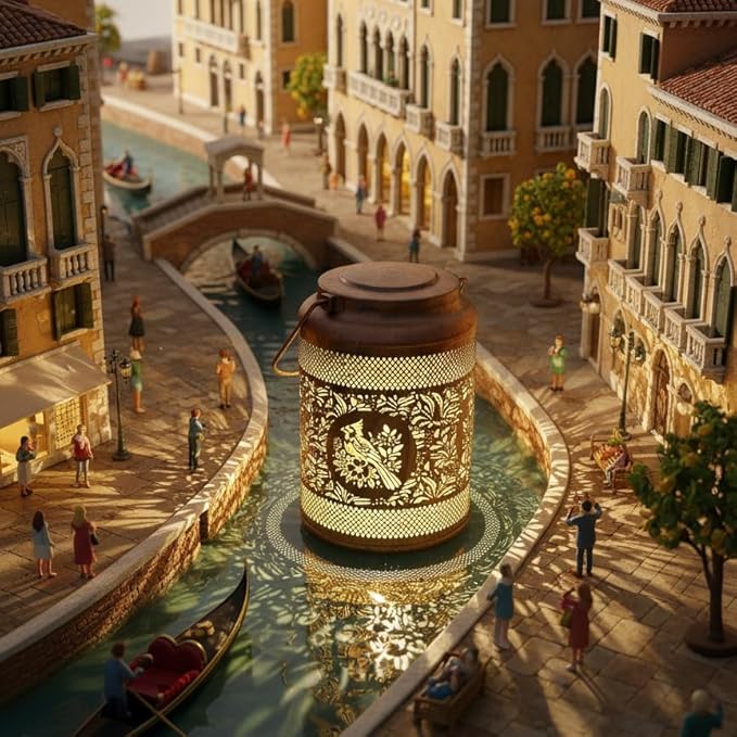 - ELEGANT DESIGN: Beautifully crafted copper-gold lantern with intricate hollow-out metal patterns creates stunning light and shadow effects for enchanting outdoor ambiance