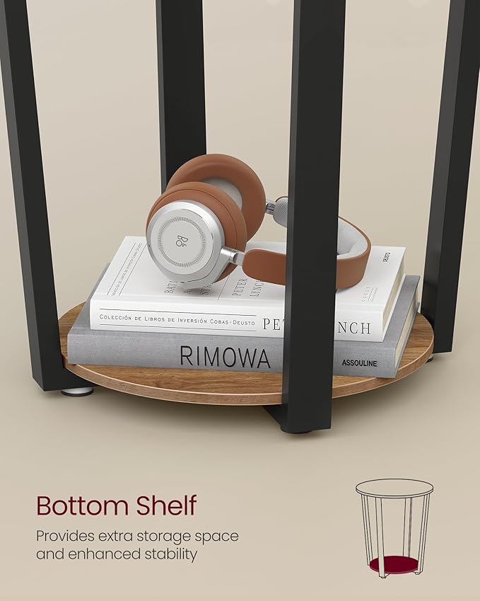 VASAGLE Round Side End Table, 2-Tier Accent Bedside Table with Storage Shelf, Easy Assembly, Nightstand for Small Spaces, Living Room, Bedroom, Honey Brown and Ink Black ULET057KB01S